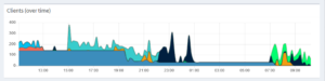 So far I made one observation. The telegraf client is doing a lot of DNS requests through the network. If I’m not wrong it does it for every request. If you look at the graphic you see that the bottom a big blue line. That is the DNS requests from telegraf. At some point around 20:00 You see a drop. Well there I change the flush interval to 120 seconds. Later at round 7:30 I wrote the IP and host name into /etc/hosts and the “noise” was gone. That is something you maybe want to do in your devices, too to save some bandwidth and energy.